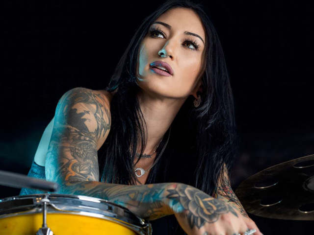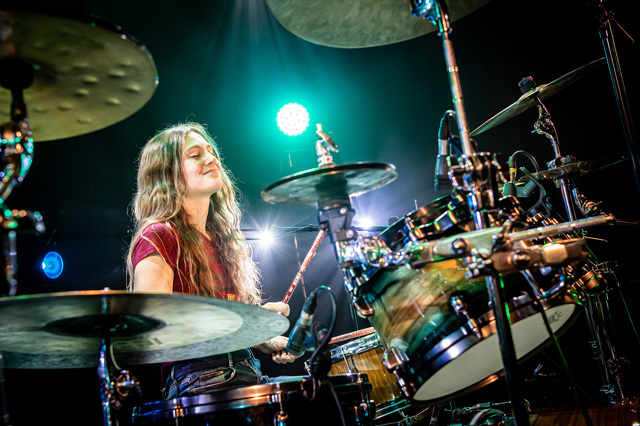 Op haar Gretsch kit en Zildijan cymbals zal zij haar Remo vellen tijdens het Drumworld Festival er flink van langs geven.