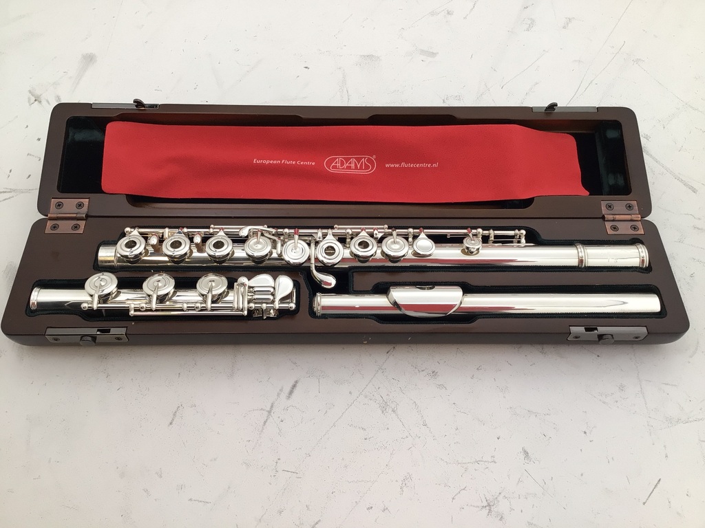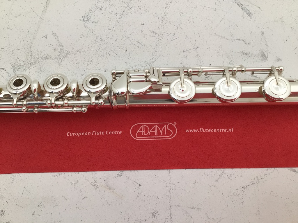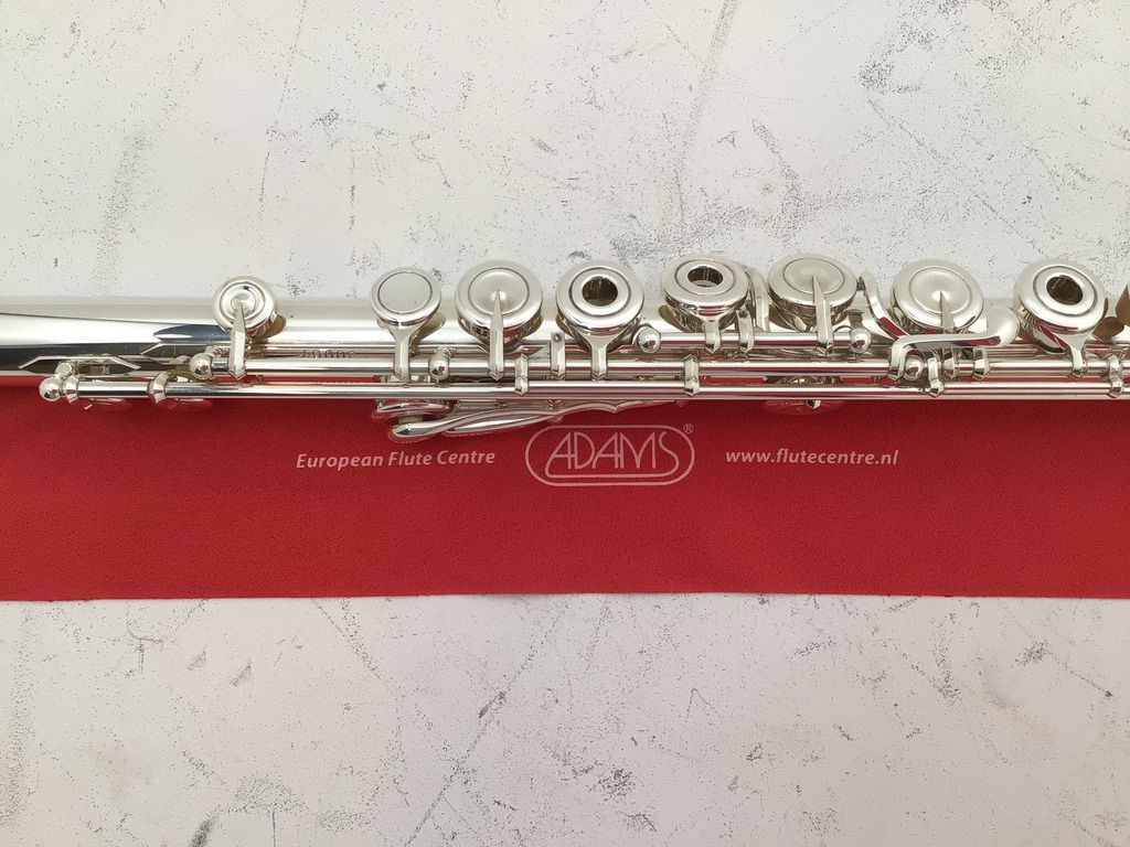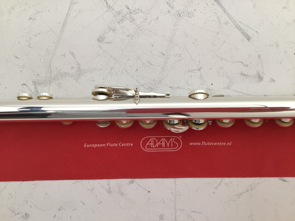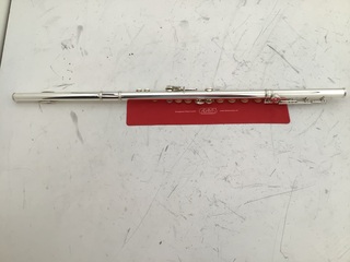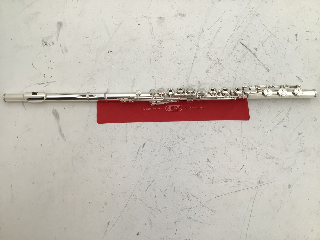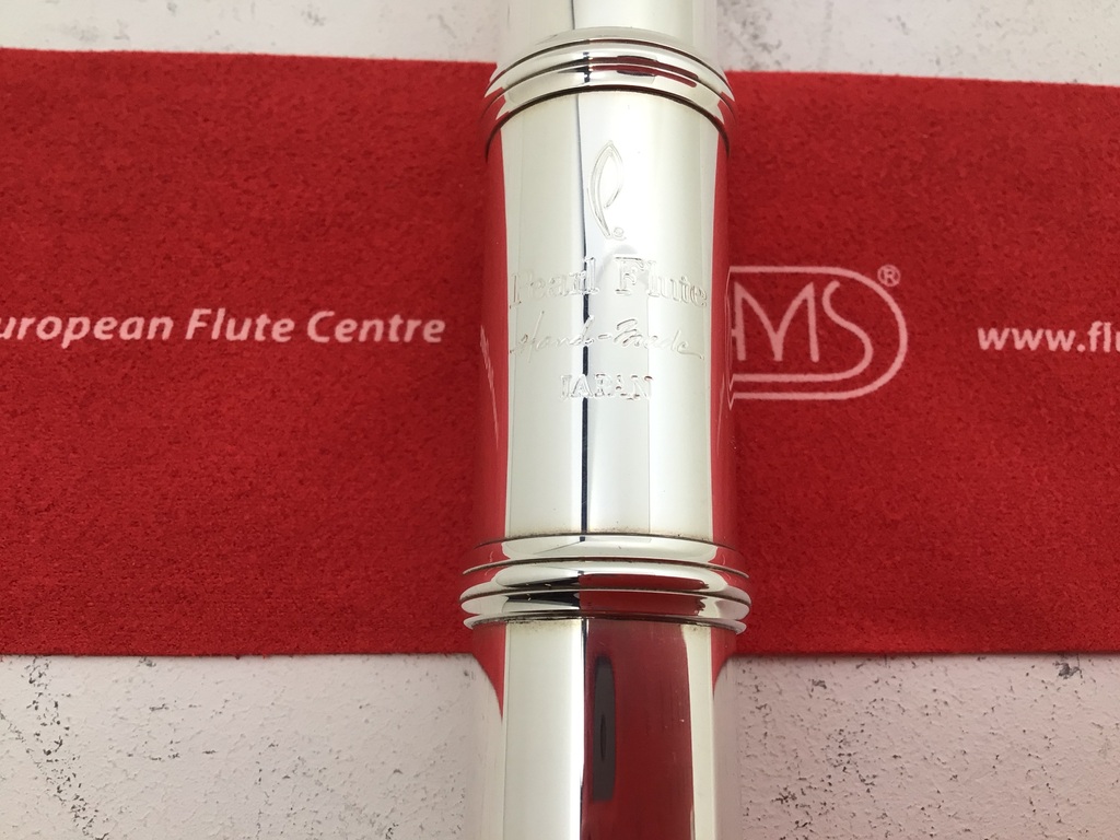 Gebruikte Dwarsfluit Pearl 9801RBE, geheel zilver, gesoldeerde toongaten, E-mechaniek, B-voet, 14k riser