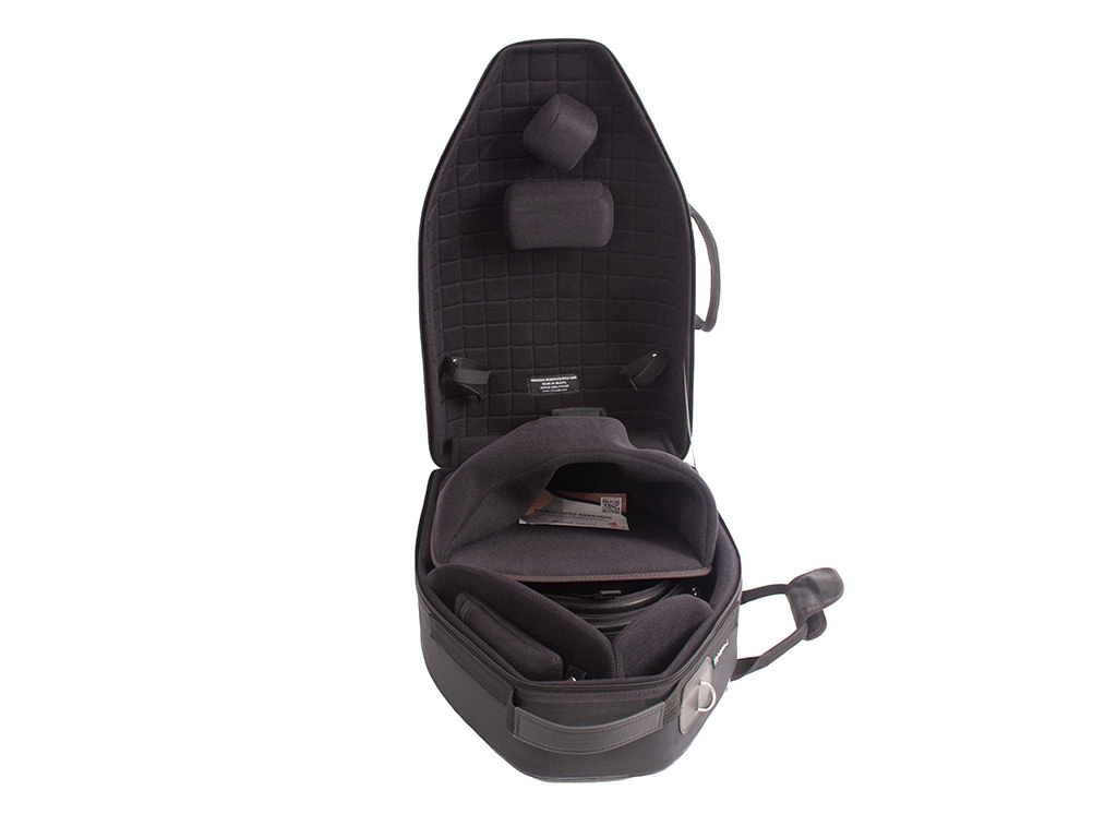 These Cases by Marcus Bonna are specifically designed for French horns. The case is made from a sturdy fiberglass shell covered in durable nylon. The inside is covered with 1cm thick foam and a soft fabric lining. A French horn will fit perfectly with 4 belts, pouch for the bell and 6 modular blocks. Two mutes will also fit inside the case.