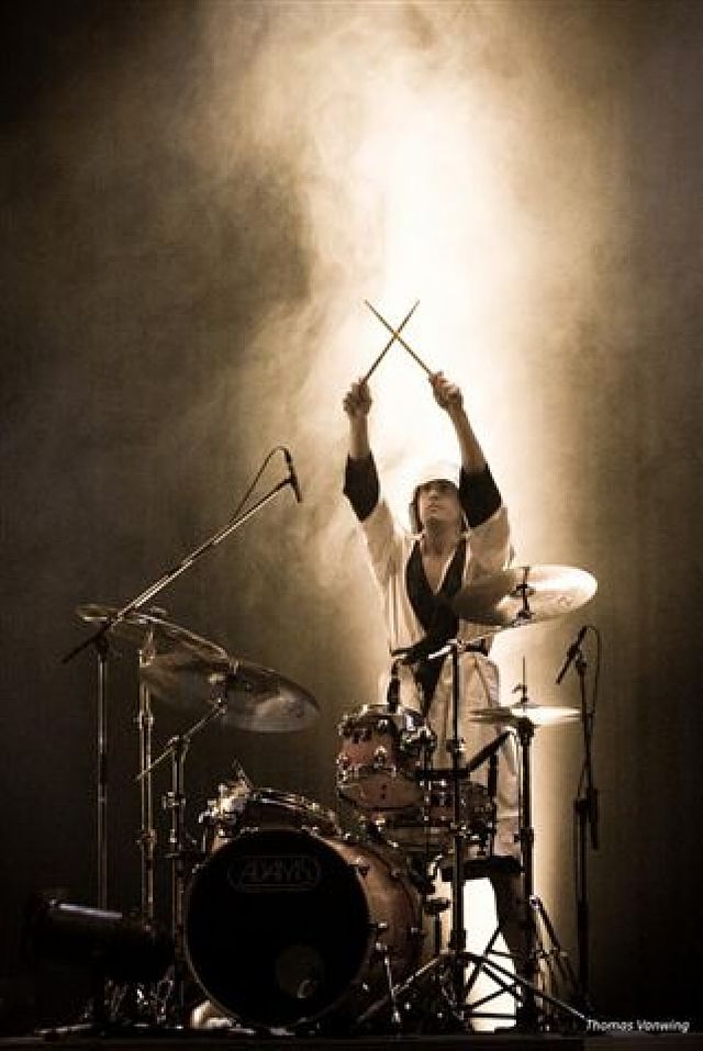 Jan joue avec des cymbales Zildjian, des baguettes Zildjian et des peaux Evans.