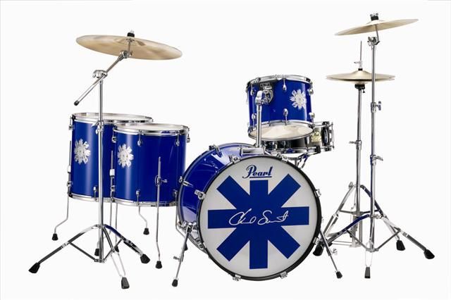 Red Hot kun je wel stellen, deze nieuwe kit van Pearl. Speciaal gemaakt op wens van Pepper Drummer Chad Smith.