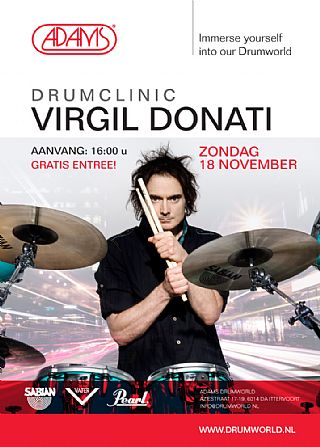 Op zondag 18 November organiseert Adams in samenwerking met Pearl Drums en Sabian Cymbals een clinic met Virgil Donati. De entree is gratis en de clinic start om 16.00 uur.