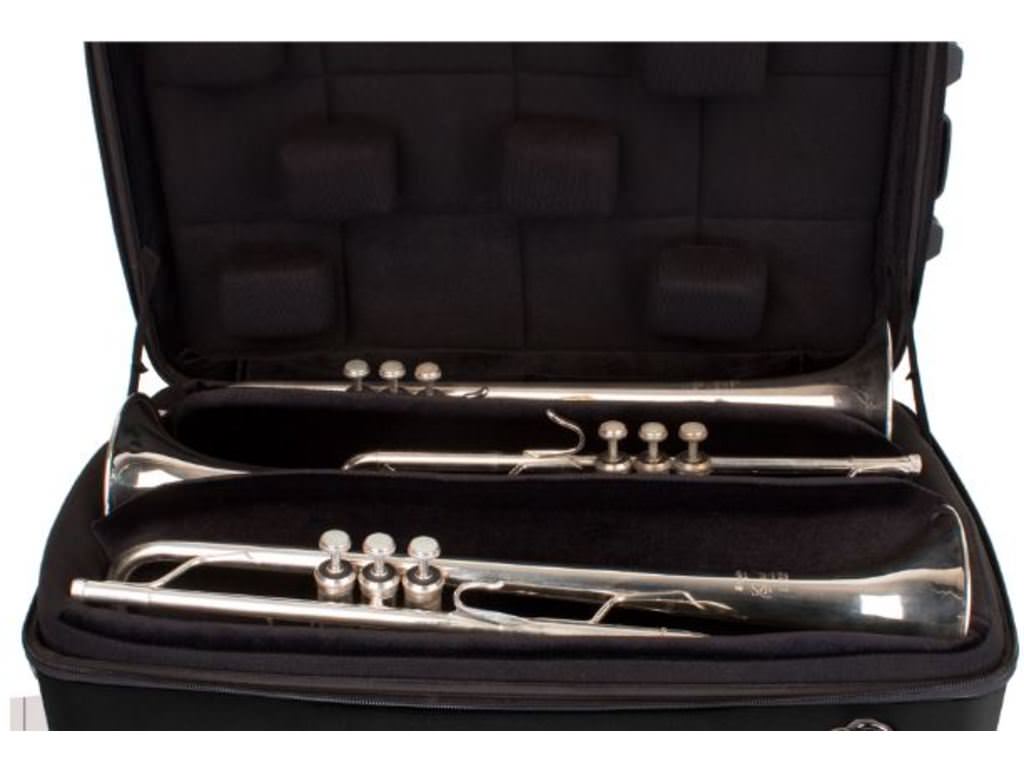 The BLT301T Single / Double / Triple Horn ZIP Case Wheels is designed to protect three Flugelhorns/trumpets. The bag is made out of lightweight ABS and has thick padding and a velvet lining on the inside that protects your Flugelhorn/trumpet. The bag has wheels and backpack straps to make it easier to carry. The bag is made of weather resistant nylon and has a pocket made to be easily organisable for accessories.
