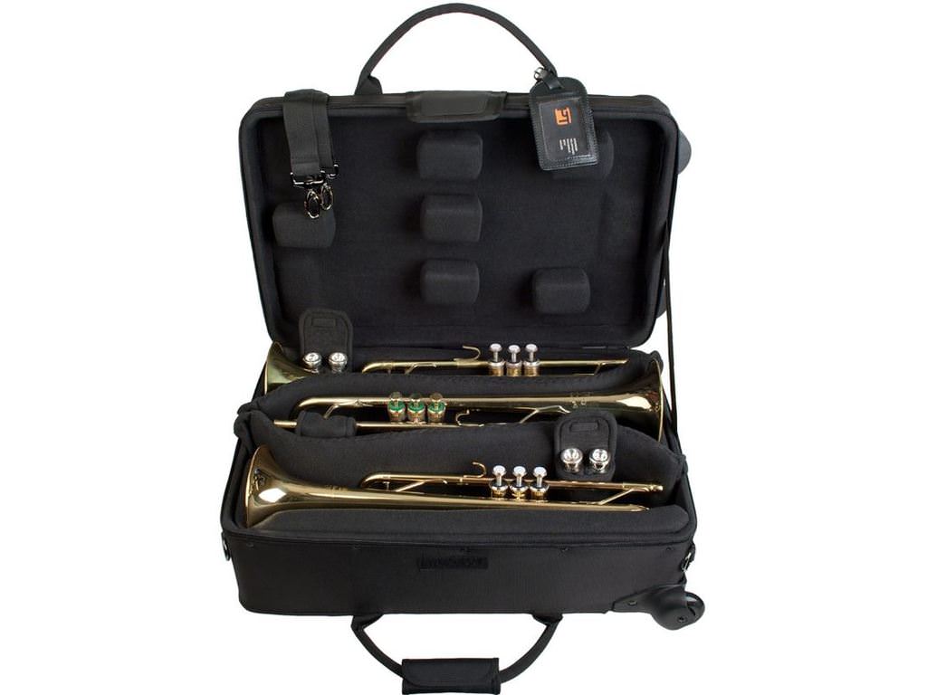 The Protec IP301TWL Triple Horn IPAC Case with Wheel is designed to protect three Flugelhorns/trumpets. The bag has thick padding and a velvet lining on the inside that protects your Flugelhorn/trumpet. The bag has wheels to make it easier to carry. The bag is made of weather resistant nylon and has a pocket made to be easily organisable for accessories.