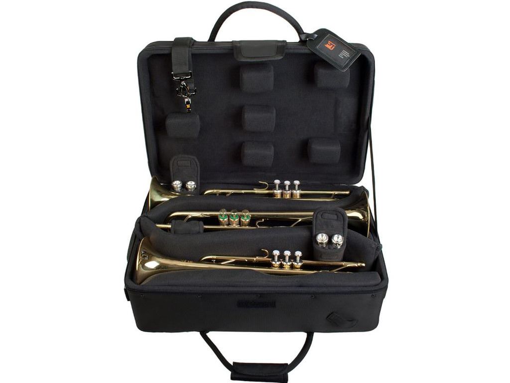 The Protec IP301T Triple Horn IPAC Case is designed to protect three Flugelhorns/trumpets. The bag has thick padding and a velvet lining on the inside that protects your Flugelhorn/trumpet. A detachable shoulder strap is included with the bag to make it easier to carry. The bag is made of weather resistant nylon and has a pocket made to be easily organisable for accessories.