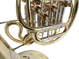Diskant dubbelhoorn Bes / Hoge F Andreas Jungwirth, messing, afschroefbare beker