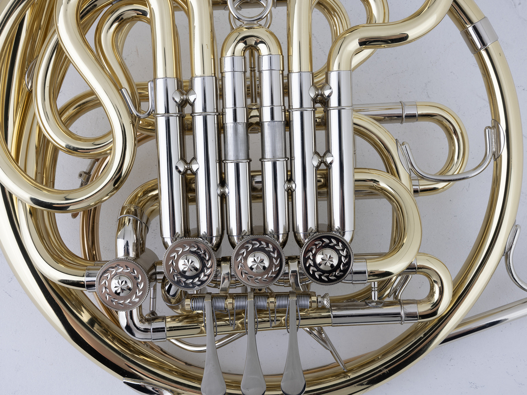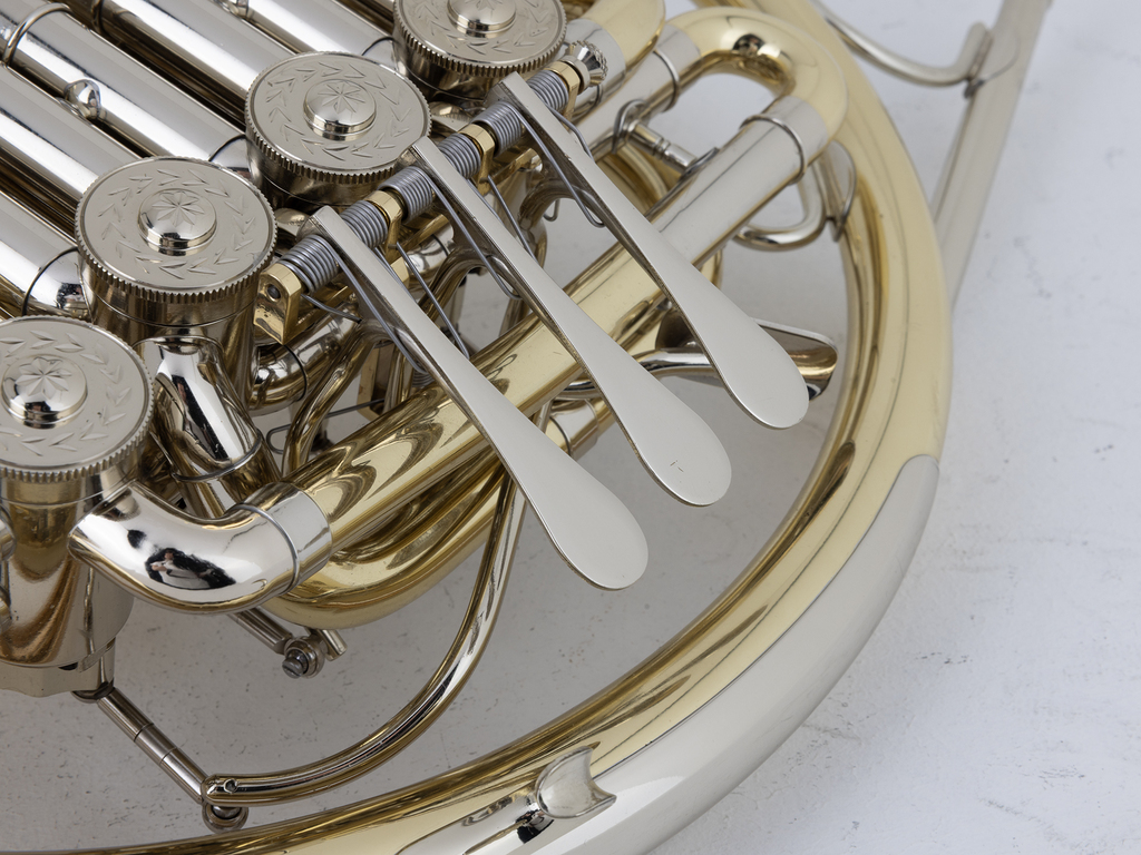 Gebruikte Hoorn (Dubbel) Paxman F.Bes, 25L, Goudmessing, Large bore, afschroefbare beker