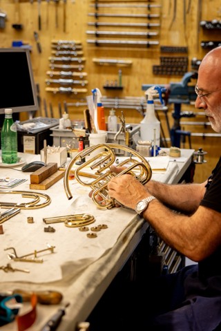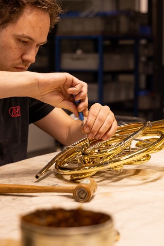 Onze reparatie-afdeling voor blaasinstrumenten is de plek waar vakmanschap en passie samenkomen. Onze ervaren en gediplomeerde reparateurs beschikken over diepgaande kennis van alle soorten blaasinstrumenten. Met uiterste precisie en gebruik van hoogwaardige materialen zorgen zij ervoor dat elk instrument weer in topconditie wordt gebracht. Of het nu gaat om kleine aanpassingen, een grondige onderhoudsbeurt of complexe reparaties, jouw instrument is bij ons in de beste handen.
