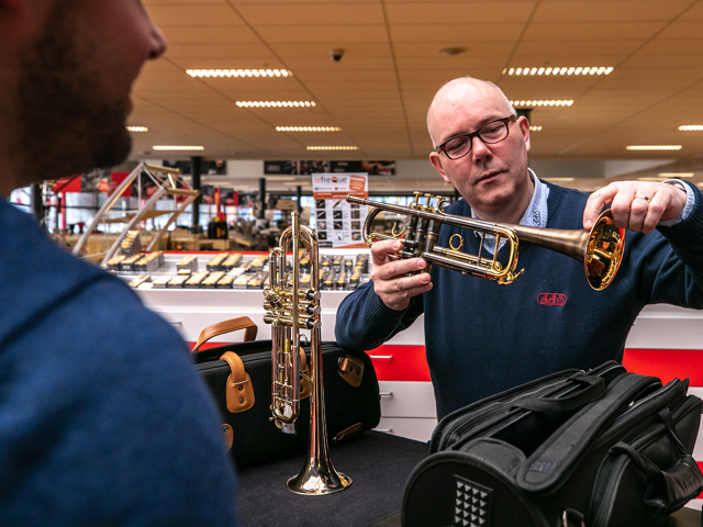 Bekijk de onderstaande video's voor een impressie van onze uitgebreide koperblaasafdelingen. Hier vind je een ongekend aanbod aan instrumenten van alle topmerken. Neem de tijd om trompetten, cornetten, hoorns, trombones en bastuba’s in alle rust te testen en vergelijken, terwijl je geniet van een vers kopje koffie. Onze specialisten staan klaar om je te adviseren en al je vragen te beantwoorden.