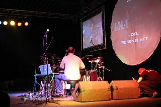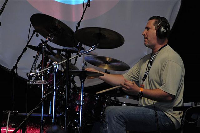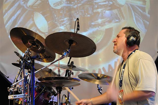 Joel Rosenblatt, wellicht een keuze die niet iedereen kon begrijpen was meesterlijk. Bijzonder aardige gozer die op een voortreffelijke manier zijn eigen spel neerlegde op de Tama die voor hem klaar stond. Dat hij vroeger gestudeerd had met Dave Weckl was soms hier en daar goed hoorbaar, of horen we bij Weckl kleine dingetjes van Joel??, volgens Joel ...het laatste.