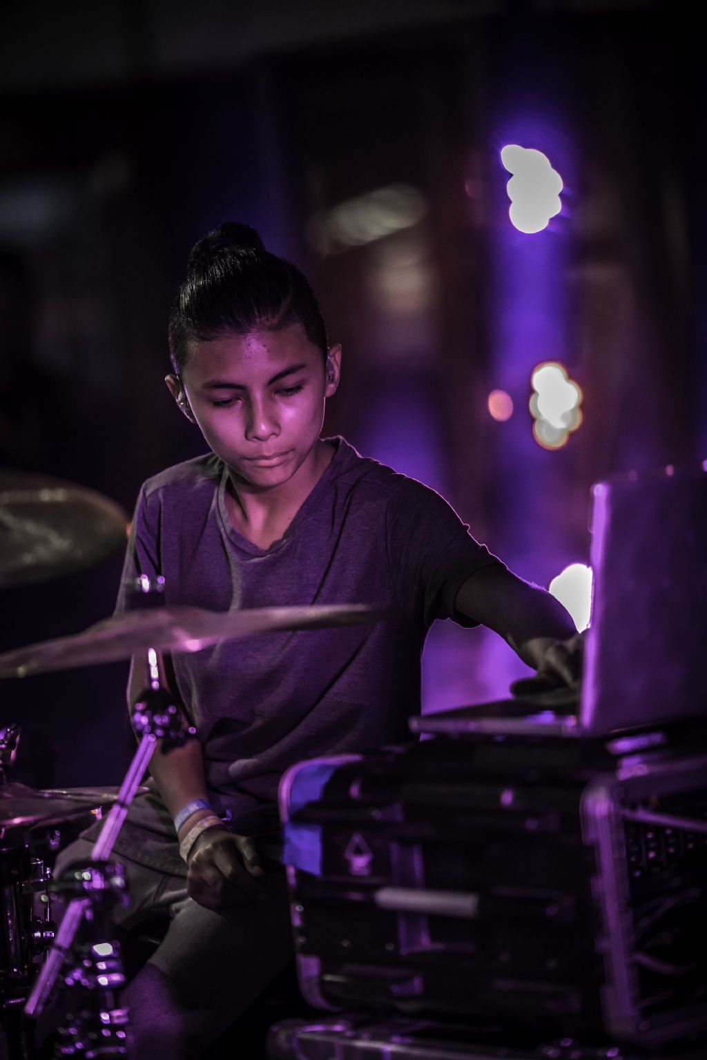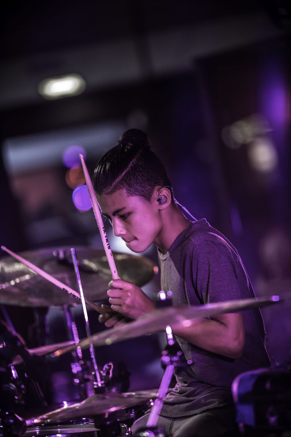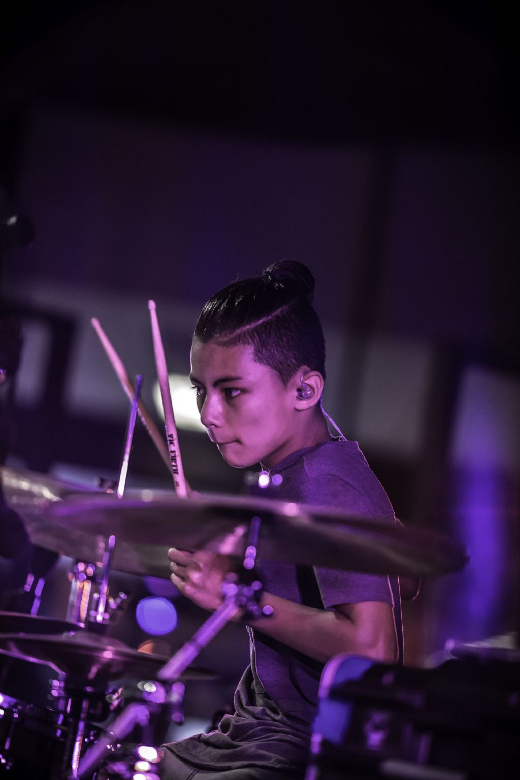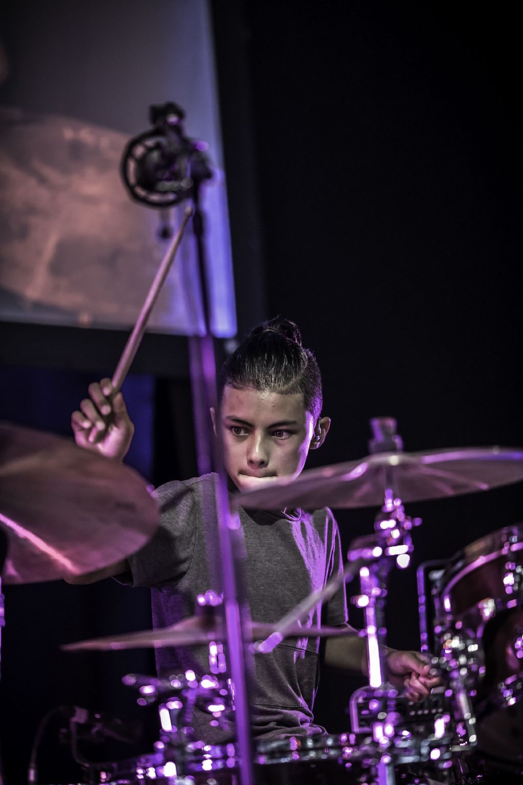 In februari gaf Myron Matitawaer zijn allereerste clinic, op Musicfair in Utrecht. De dertienjarige winnaar van Drumtalent 2015 vond het allemaal misschien wat spannend, maar aan zijn spel was dat bepaald niet te merken. Met veel bravoure en overduidelijk plezier sloeg hij zich door de fusiongetinte gospel- en r&b-tracks, begeleid door ziin vader Stef op toetsen en de onwaarschijnlijk makkelijk spelende bassist Daniel van der Molen. Later in zijn clinic stuurt hij alle volwassenen het publiek in en gaat hij los op een paar getructe begeleidingstracks. Opvallend hoe hij alle accentjes meepakt, met veel rust in zijn time en creatief omgaand met alle verschillende klanken in zijn forse Adams set.