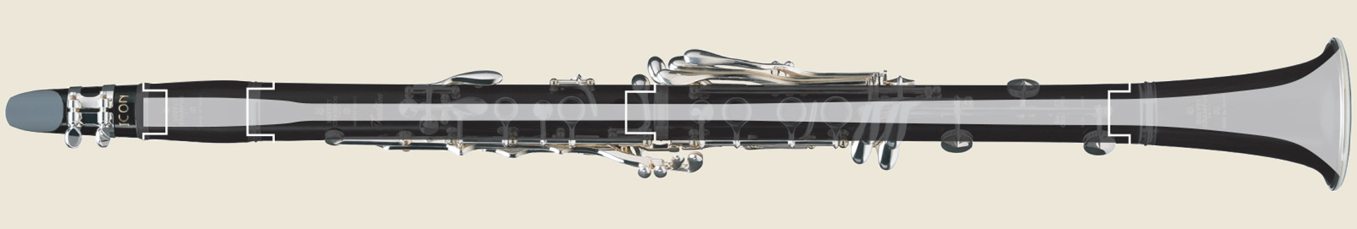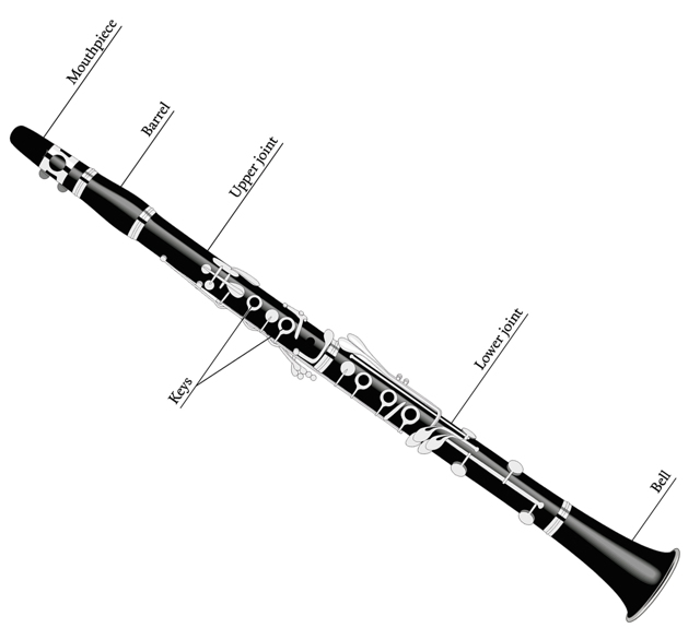Om de fabricage, het transport en het onderhoud gemakkelijker te maken, bestaat de klarinet uit vijf afzonderlijke delen die met met kurk bedekte pinnen in elkaar worden gestoken: