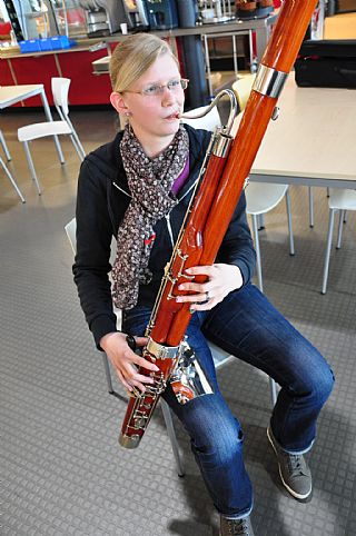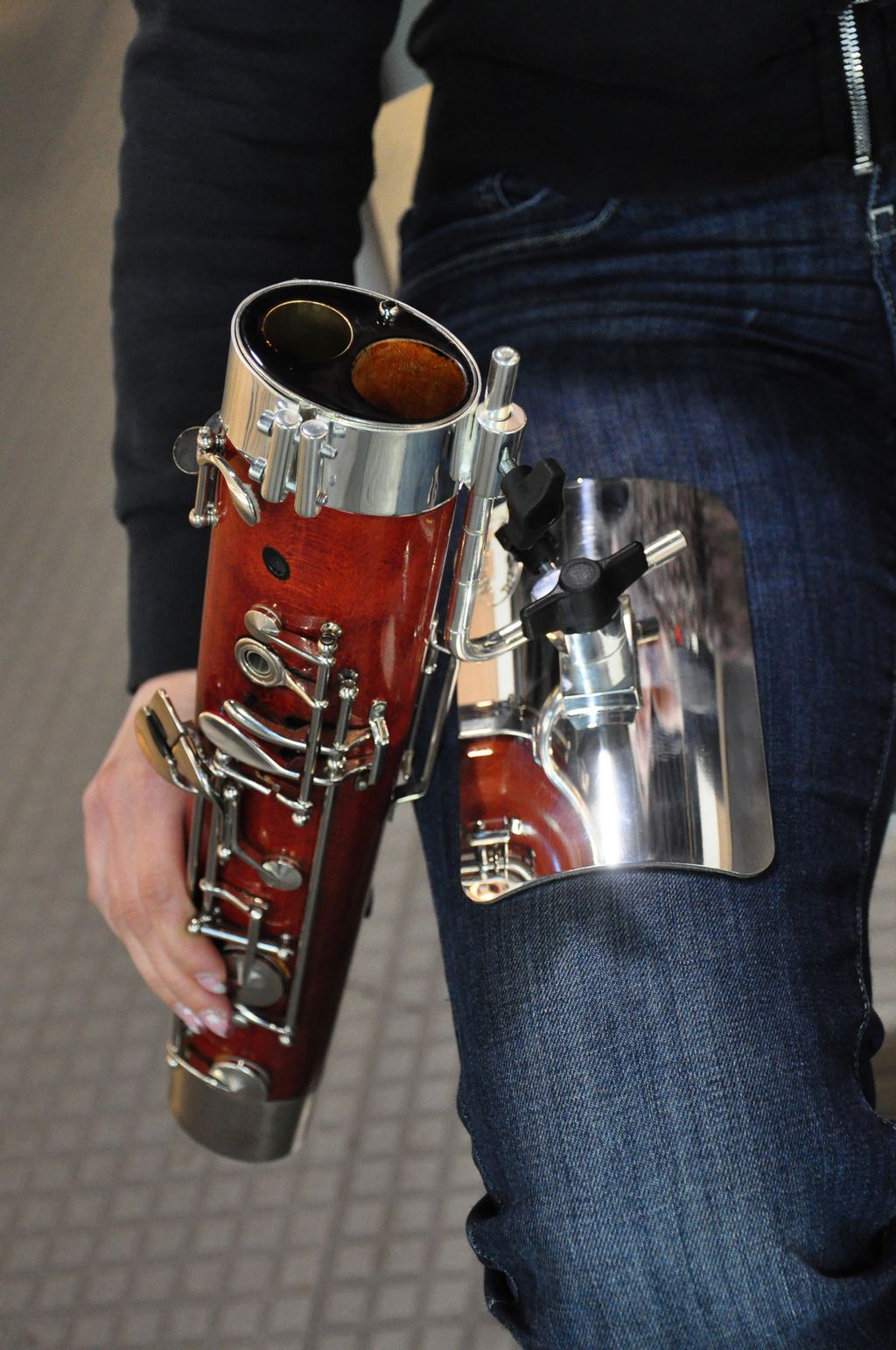 De fagotsteun is zodanig ontwikkeld dat hij in iedere gewenste positie verstelbaar is zodat het instrument voor iedereen perfect in balans op het been gezet kan worden. Hierdoor wordt een draagriem overbodig.