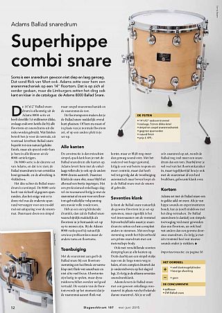 Adams zet met de Ballad snare een te gekke add-on neer. Als je van hippe sounds en experimenteren houdt, kun je jezelf eindeloos met het ding vermaken. De Ballad snaredrum is dankzij een simpele toevoeging veel meer geworden dan een floortom, en ook heel wat anders dan een gewone doorsnee snaredrum. Zo krijg je met één trommel heel wat nieuwe sounds onder je stokken.