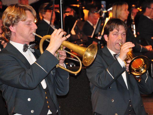 C-United, bekend van X-Factor op TV, liet zich deels begeleiden door de harmonie, Sopraan Tieneke Berkhof had af en toe moeite over het orkest heen te komen. Toch een kleurrijke afwisseling in het programma. Bugelsolist Maurice Daemen wist alle toehoorders echter op het puntje van hun stoel te krijgen door zijn bijzonder muzikale vertolking van 2 werken van zijn CD, die deze avond werd gepresenteerd. In een haarzuivere uitvoering demonstreerde hij niet alleen zijn eigen vakmanschap, maar ook de bijzonder uitgebreide nuances van de Adams Bugel waarop hij speelde.