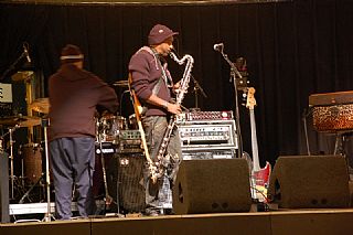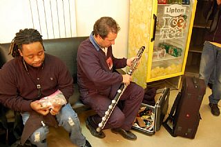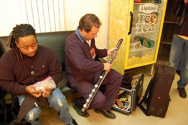 Nadat Frans de sax onderhanden had genomen verzocht Marcus zijn roadmanager de flightcase van de Basklarinet terug uit de bus te halen.