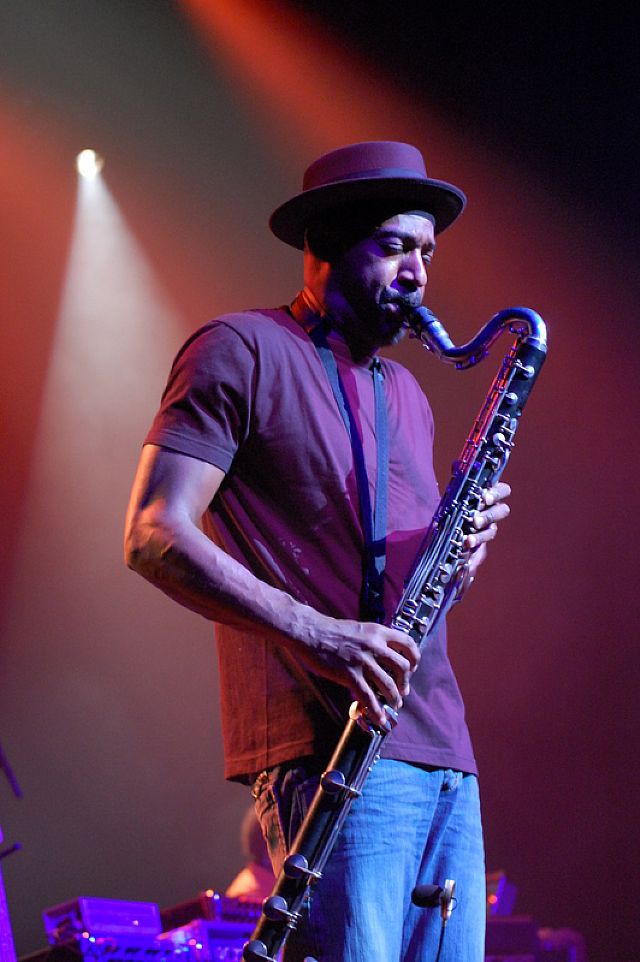 Adams Muziekcentrale repareert en onderhoudt de basklarinet van Marcus Miller na afloop van zijn concert in Brussel.