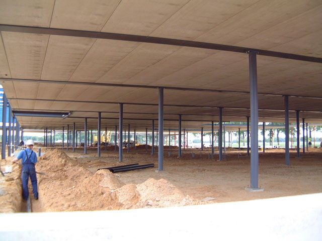 Onderstaande foto's laten de vorderingen zien van de grote hal.