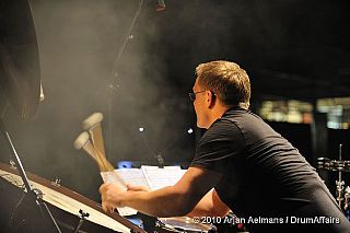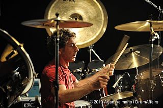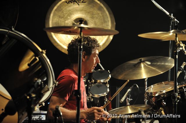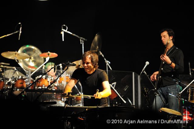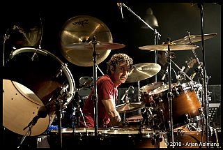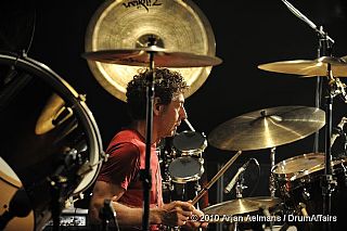 Nadat de grote prijsuitreiking had plaatsgevonden (er werd onder andere een Adams 8000 Shellset weggegeven!!!) was het tijd voor de hoofdact van de avond. We hadden al de hele week het genoegen gehad dat de 4 heren in de hal achter Drumworld hadden gerepeteerd en dus hadden wij ook de stukken tot leven horen komen. De heren hadden zichtbaar plezier in het maken van muziek met elkaar, en ook Simon Phillips die toch eigen zijn sporen al lang en breed verdiend heeft speelde als een jonge hond achter zijn herkenbare Signature drumkit. Absoluut fantastisch.