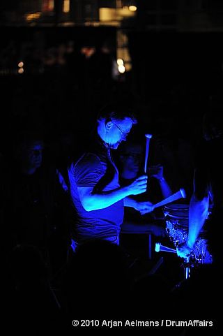Het voorprogramma was in handen van (een deel van) het Limburgs Percussie Collectief, midden tussen het publiek brachten zij mooie muziek ten gehore. Ze speelden verschillende werken van hoog niveau, de absolute stilte van het publiek tijdens dit akoestische optreden was dan ook erg mooi, dat zijn we niet altijd gewend als er een groep drummers bij elkaar staat!