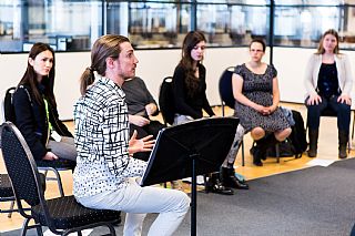 This class will focus on the relationship between breath and balance and improving each of them. You will be talked through a sequence of gentle movements that works like a physical riddle. Each new movement is repeated and explored, enabling you to become familiar with it, and to begin to play with unaccustomed movement relationships. By engaging your curiosity, gently and at your own rate, you learn to explore the world of your internal sensation. You learn to use this awareness to release chronic patterns of tension and create new movement possibilities. Results of this lesson can be improvements in tone production, better coordination and facility and freer breathing.