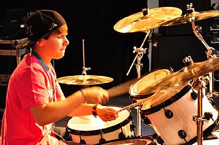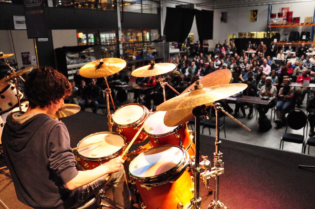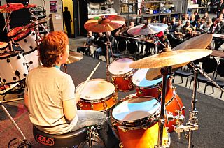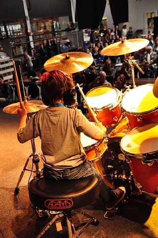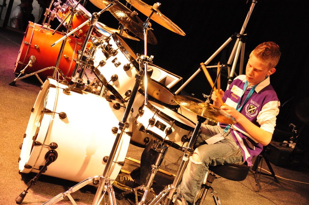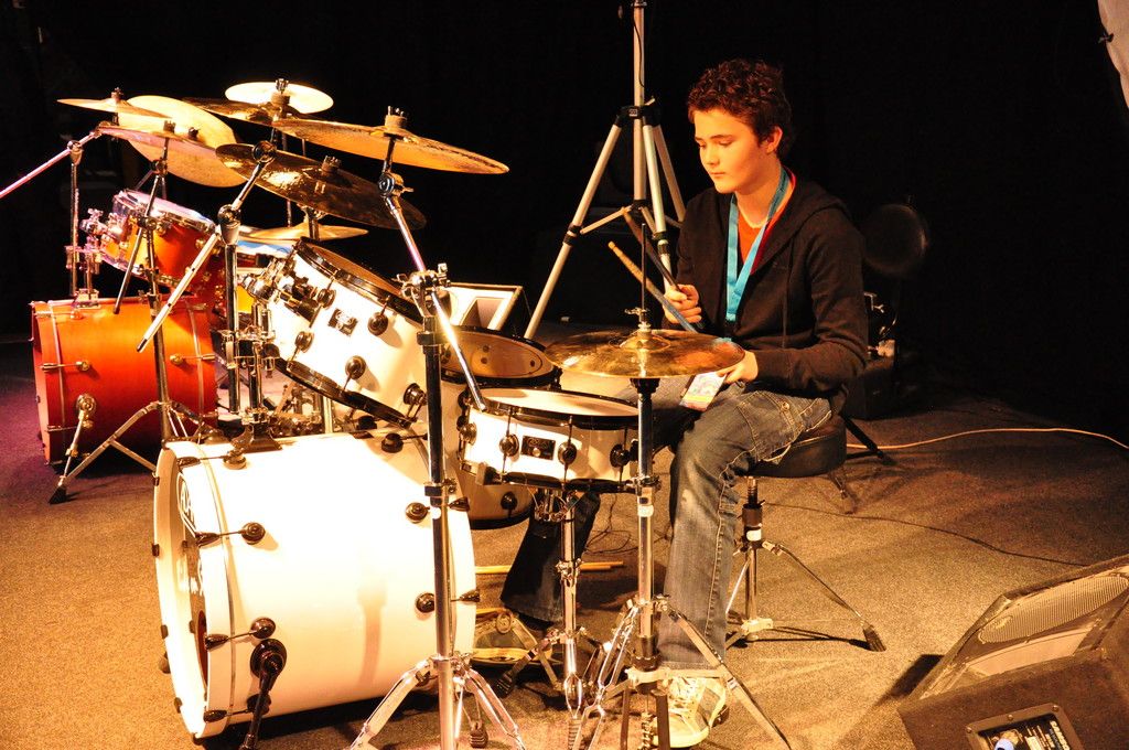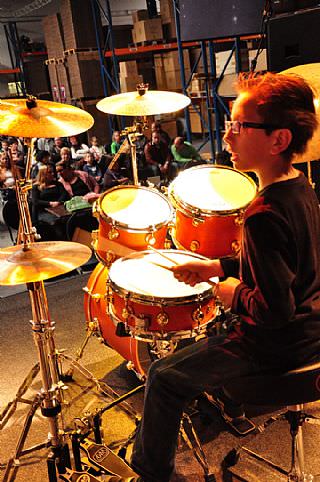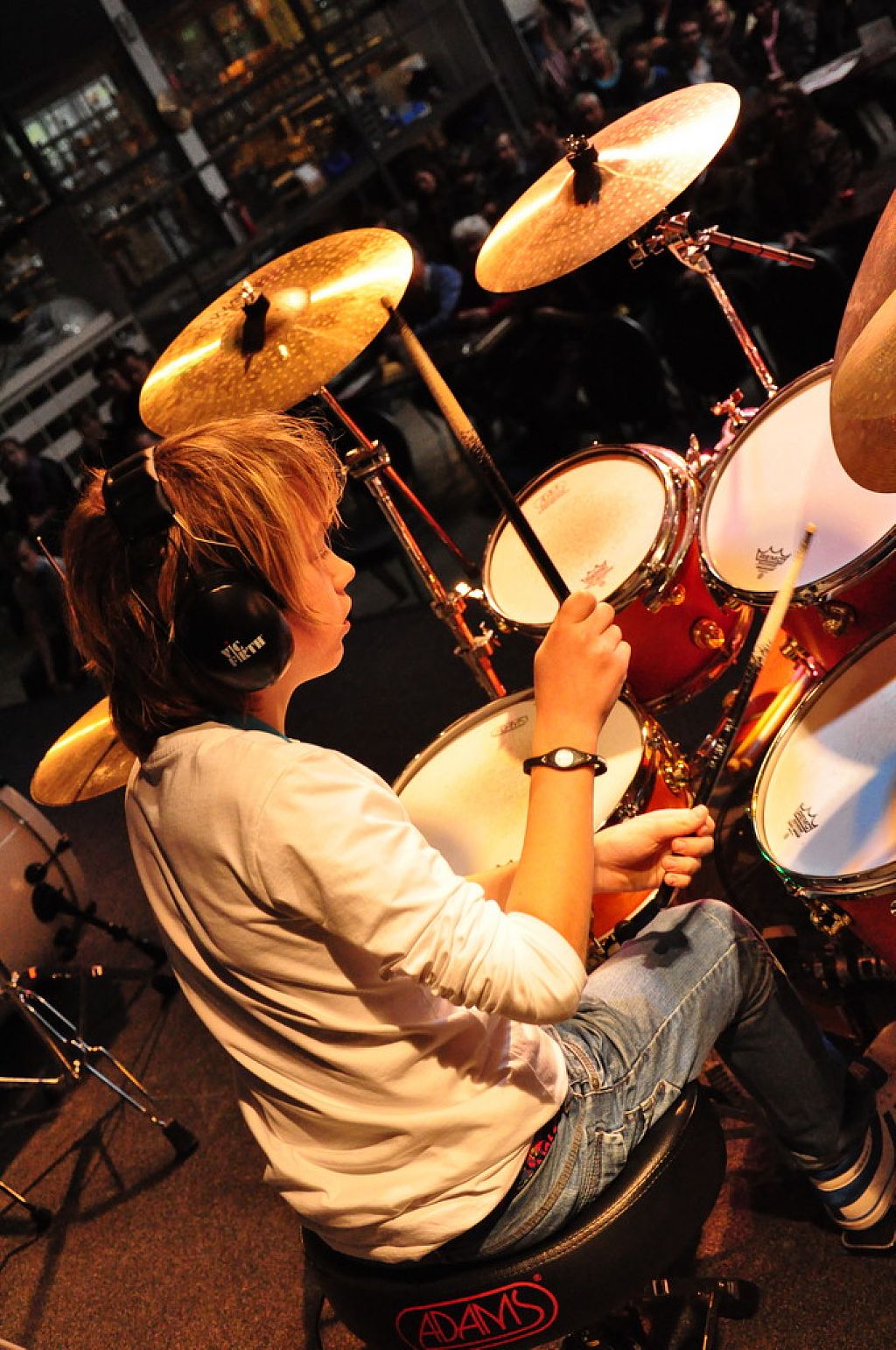 Zaterdag 21 april was het zover. Alle drumleerlingen tot 14 jaar hadden met hun muziekleraar een nummer ingestudeerd dat ze voor de eerste keer voor publiek gingen uitvoeren. De oudere leerlingen hadden de mogelijkheid een ingestudeerd stuk met live band te spelen. Voor een eerste keer mogen we spreken van een geweldige dag met vele gespannen gezichten van zowel leerling als de aanhang in het publiek en vele muzikale hoogtepunten. Zeker voor herhaling vatbaar!