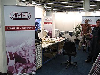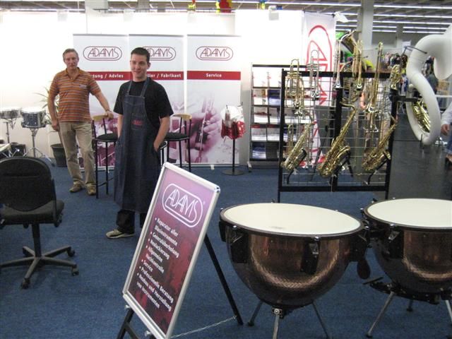 Unser Ziel war es, den Besuchern ein abwechslungsreiches Sortiment zu bieten. Auf unserem Stand konnte der Musik-Freund und Kenner die verschiedensten Instrumente ausprobieren. Unser Angebot war so interessant, dass die Gruppe die BlechHarmoniker, bekannt aus Rundfunk und Fernsehen magisch angezogen wurden und auf den jeweiligen ADAMS Instrumente den Besuchern ein musikalisches Intermezzo boten. Sehr großen Andrang erlebten wir an unserem Stand, weil wir durch einen unserer Mitarbeiter live zeigen konnten, wie verschiedene Blasinstrumente repariert und gewartet wurden. Dieser Service unseres Hauses wurde von den Kunden sehr positiv gewertet. Ebenfalls positiv bewerteten uns u. a. der Verein Volksmusikerbund NRW e.V Landesmusikjugend NRW