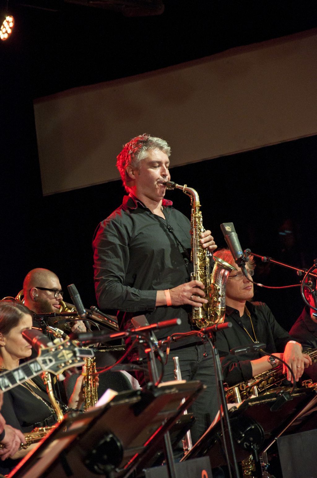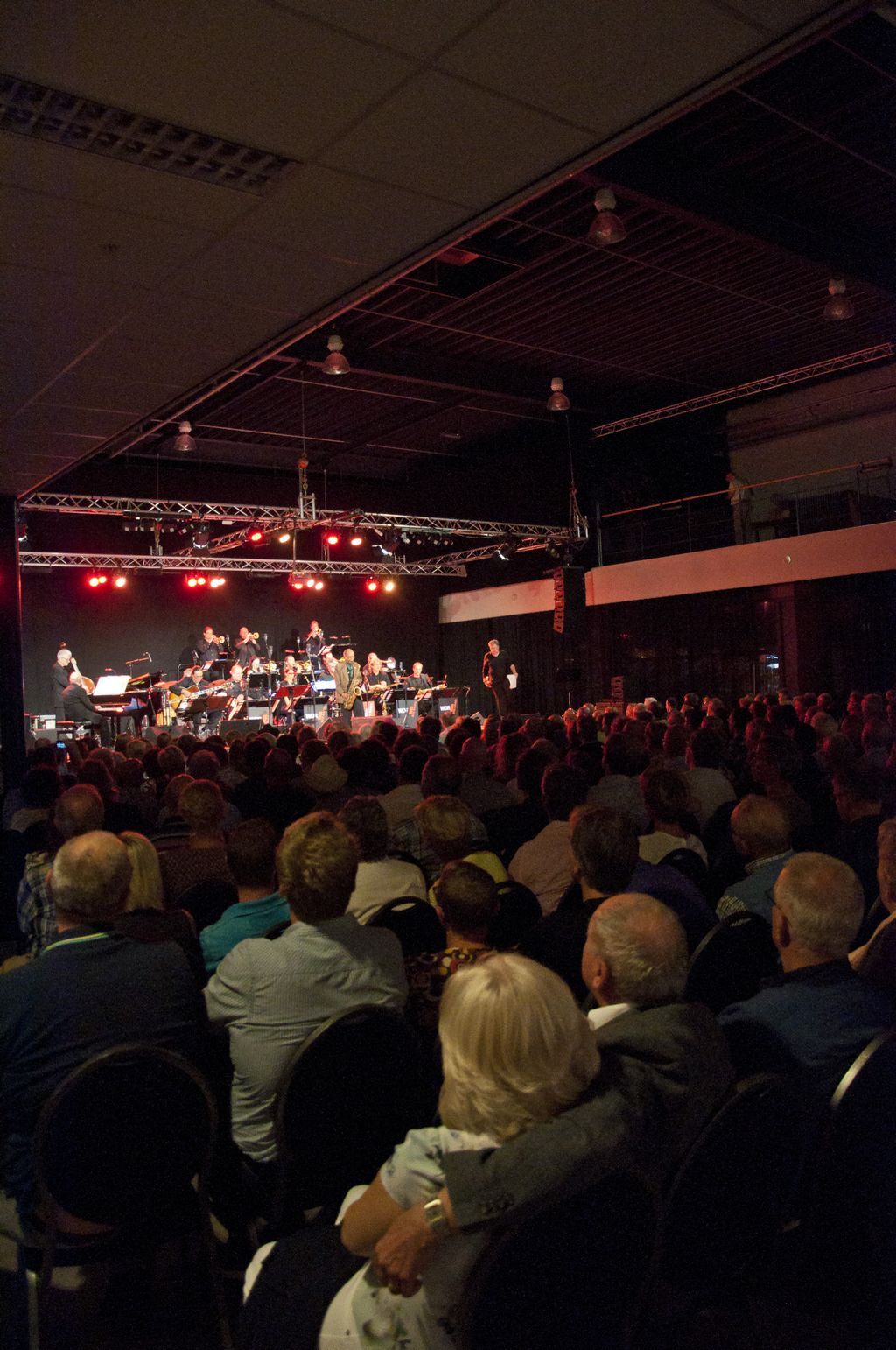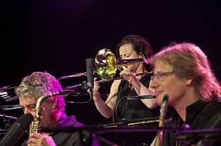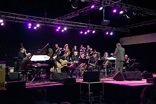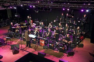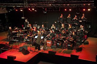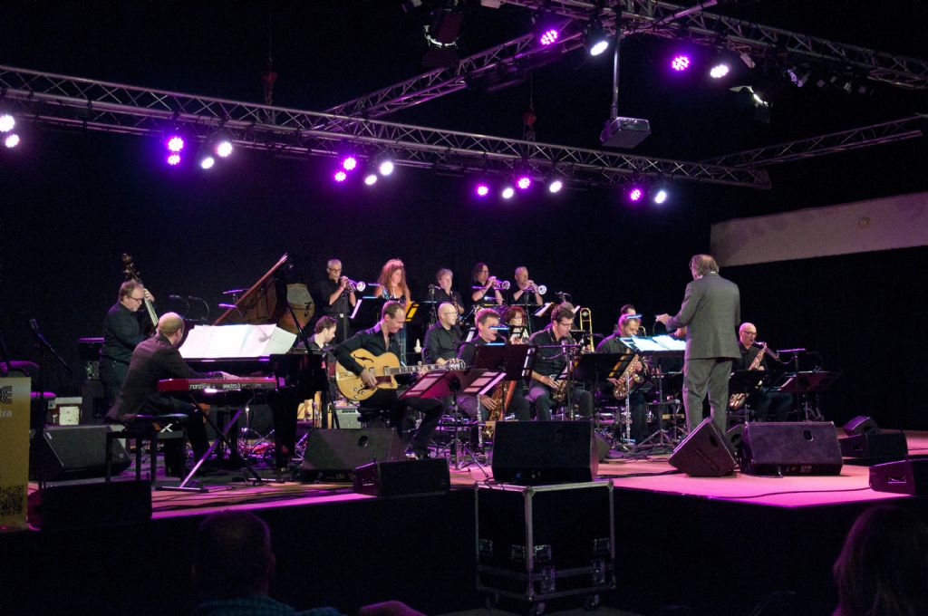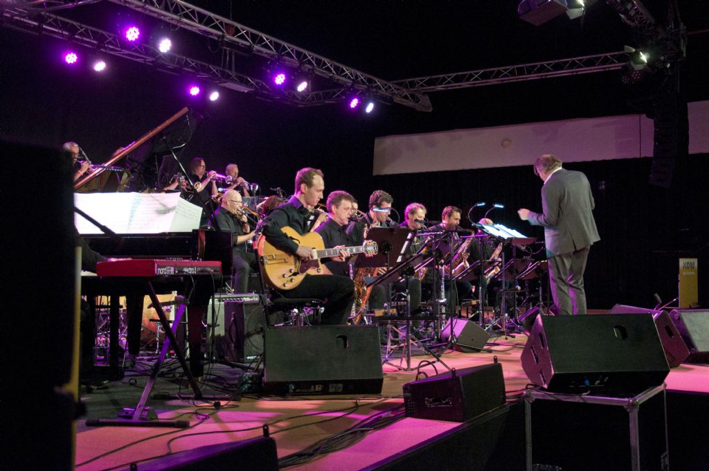 's Avonds zorgden twee geweldige Big Bands voor schitterende muziek. The Score Jazz Orchestra uit Venlo opende met een spetterend optreden. Deze big band speelt op projectbasis twee keer per jaar i.s.m. bekende jazz musici uit binnen en buitenland. Het repertoire was zeer toegankelijk en aantrekkelijk voor het massaal aanwezige publiek met uitstekende solisten uit eigen geleding.