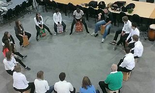 Hier konden de muzikanten zich inschrijven voor een rondleiding in de instrumentenfabriek of een masterclass Cajon. Hiervan werd volop gebruikt gemaakt, de masterclass Cajon werd met veel enthousiasme geleid door Nils Fischer.