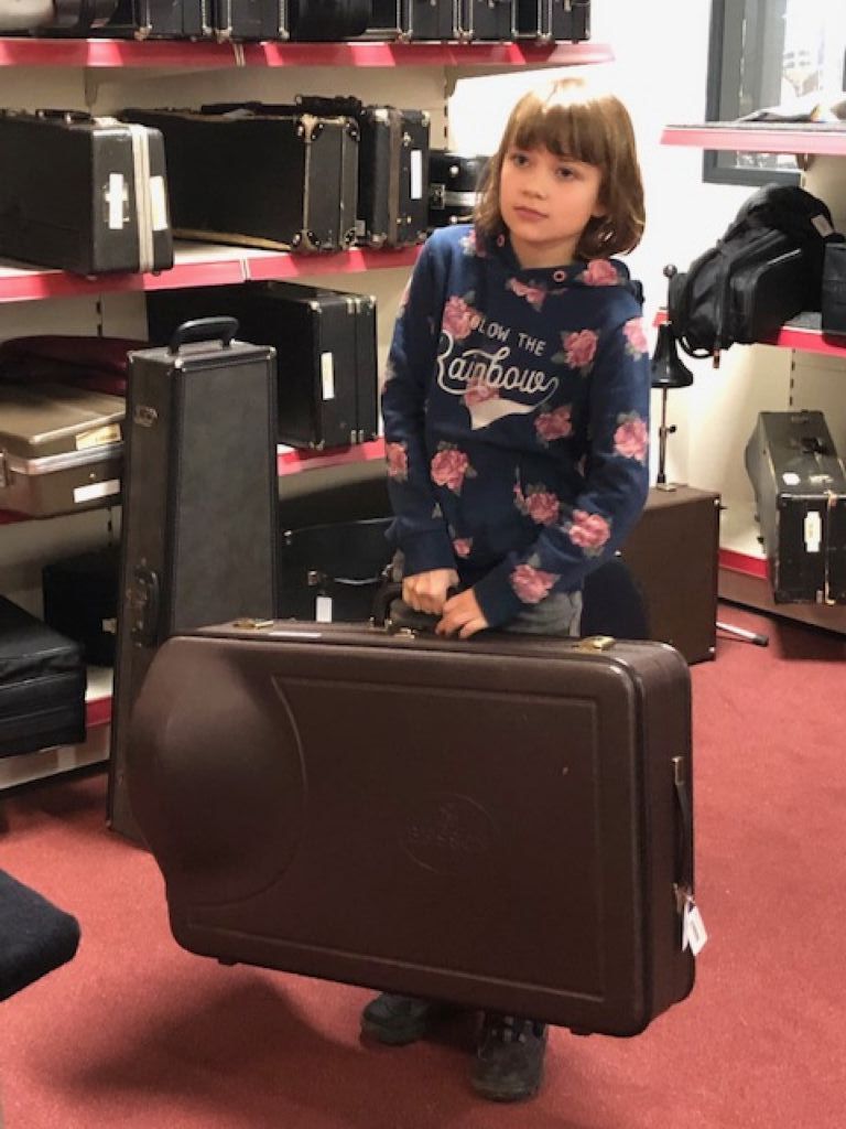 Toen we haar voorstelde om eens even een euphonium te proberen zagen we eindelijk een lach op haar gezicht! "Deze wil ik!", zei ze. Dolgelukkig met haar nieuwe euphonium verliet ze samen met haar ouders onze winkel in Ittervoort.