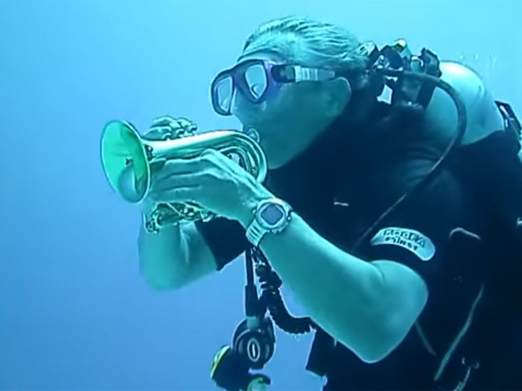 Manchester Brass pocket trompet getest op 30 meter diepte in de Rode Zee.