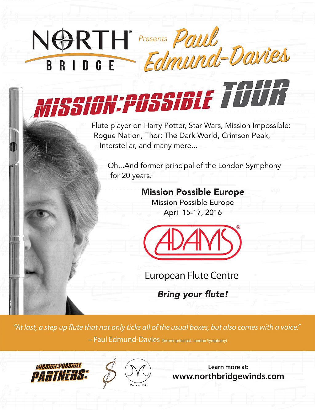 Paul Edmund-Davies speelde ruim 20 jaar als eerste fluitist in het Londens Symphonieorkest. In die periode speelde hij in tal van soundtracks van bekende en minder bekende films, zoals o.a. Harry Potter, Star Wars en Mission: Impossible.
