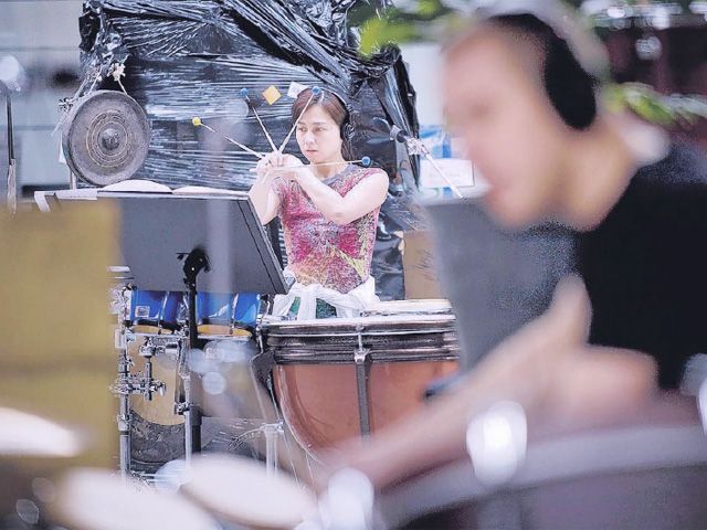 De percussionisten gebruiken niet alleen bestaande instrumenten voor het slagwerkstuk. Hout, ijzer, folie en zelfs hun eigen lichaam gebruiken ze om geluid mee te produceren. „Als slagwerker ben je gewend om veel van instrument te wisselen”, zegt Lattanzi. De artiesten komen uit zes verschillende landen: Italië, Oostenrijk, Bulgarije, Verenigde Staten, Frankrijk en Japan. Toch blijken sommigen elkaar te kennen. Veel van hen hebben les gehad op de universiteit Yale in de Verenigde Staten. Ze kregen daar les van Robert Van Sice. Stoyanov kent één van zijn nieuwe collega’s nog uit die tijd. „Het is tien jaar geleden dat ik hem voor het laatst gezien had”, vertelt hij lachend.
