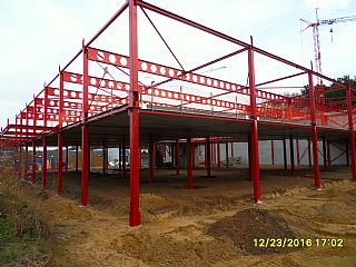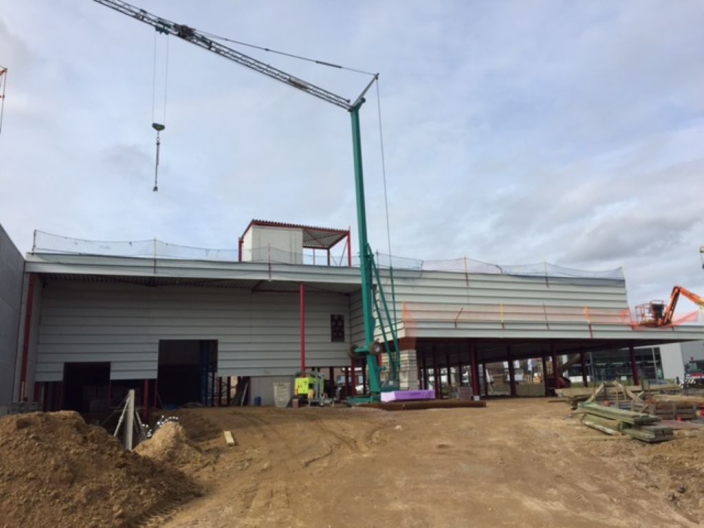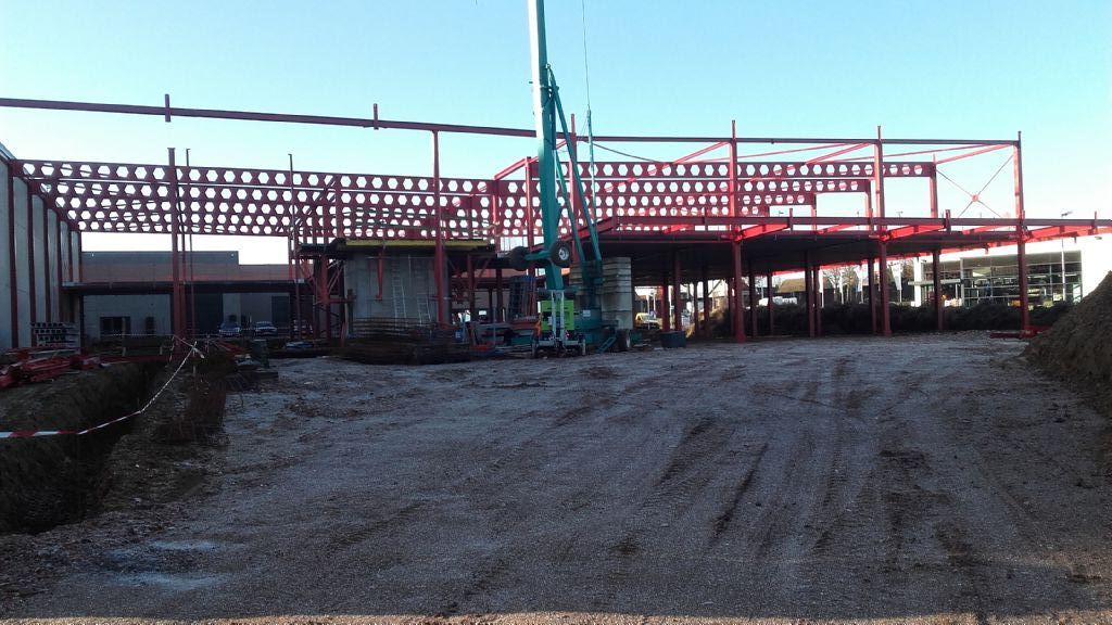 Op moment van schrijven (16/6) is de ruwbouw afgewerkt. De fundering met metalen skelet is gezet en de verdiepingsvloer, muren en platen geplaatst, net zoals de afwerking met de vensters en deuren. De binnenafwerking is begonnen.