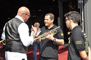 Muzikanten in het publiek, maar ook performers op het festival konden op onze stand en backstage kennis maken met onze trompetten en bugels. Meer dan eens werden onze instrumenten meteen op het podium uitgeprobeerd! De lovende reacties achteraf bevestigen dat de Adams Custom Series daadwerkelijk tot de wereldtop behoren, en daar zijn we maar wát trots op. Voor menig artiest was de eerste kennismaking met Adams zelfs reden om meteen een vervolgafspraak te maken voor een bezoek aan ons bedrijf!