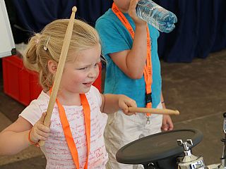 De Drum-O-Meter trok veel vooral jeugdige muzikanten naar onze stand. Zij probeerden zoveel mogelijk “single strokes” te spelen binnen een minuut.