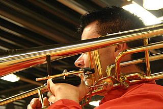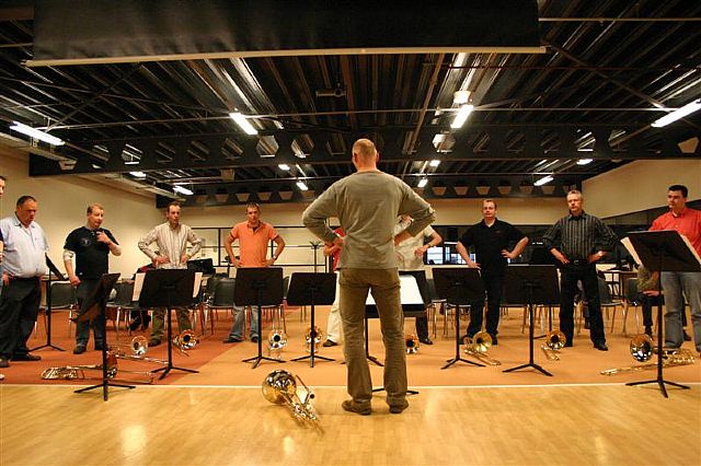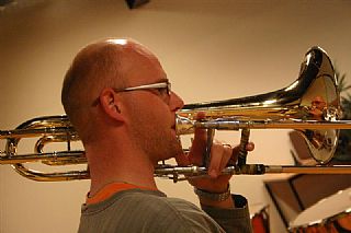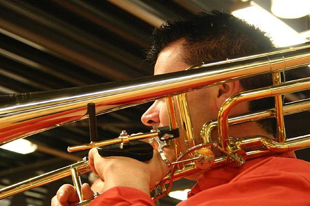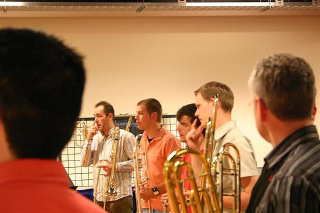 Donderdag 19 april was er een regionale workshop van het trombonefestival “Slide Factory”. Dit festival wordt dit jaar voor de 2e keer georganiseerd door het New Trombone Collective in samenwerking met Jos Jansen. Na een kort concert Jos en van een selectie van het New Trombone Collective (Bart Claessens, Mark Boonstra en Koen Kaptijn) konden de deelnemers zelf aan de slag en kregen ze ook praktische tips over onder meer ademhaling en schuiftechniek.