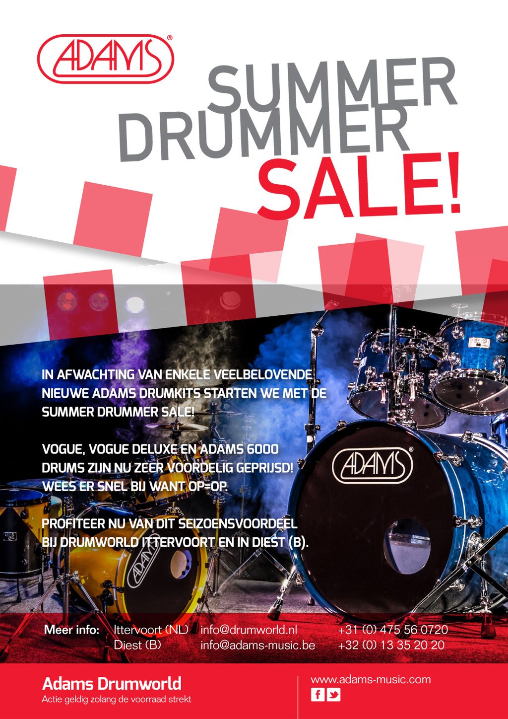 Profiteer nu van dit seizoensvoordeel bij Adams Drumworld in Ittervoort (NL) en in Diest (B).