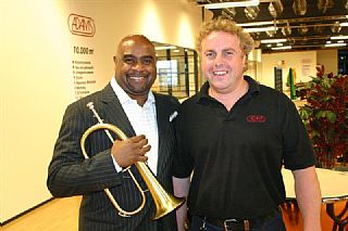 Tijdens The Hague Jazz kwamen we in contact met Terell Stafford, trompettist bij het befaamde Vanguard Jazz Orchestra. Tijdens een gesprek nodigden we Terell uit om, als hij een keer 'in de buurt' zou zijn, een bezoekje te komen brengen aan onze fabriek in Ittervoort. Hier zouden we hem dan alle ins en outs van onze bugelproductie kunnen laten zien. Ogen en oren zeggen immers meer dan woorden. Terell liet er geen gras over groeien en besloot, nog geen 3 maanden later, zijn tour in Italië te onderbreken om naar Nederland te vliegen. Ook gelijk even een hotel geboekt om de dag erna een bezoek te brengen en de Adams Bugel te testen. Terell was zo ongelooflijk enthousiast over de kwaliteit van de in 2 jaar ontwikkelde Adams Bugel dat hij besloot de rest van zijn tour de Adams Bugel eens flink aan de tand te gaan voelen. Terell's reactie zullen we te zijner tijd op onze website plaatsen dus houd het zeker even in de gaten! Zijn eerste reactie loog er niet om: vanuit een Master Class in de V.S. belde hij ons. "Beware: the success of this instrument will be huge..."