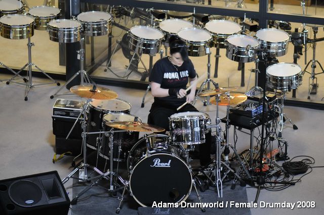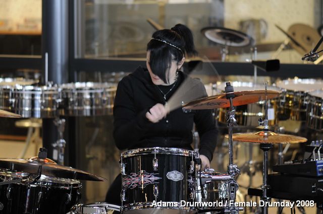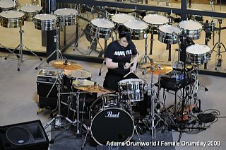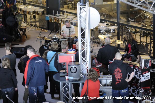 Katha liet zien wat het inhoud om beheerst en rustig een vette partij te spelen. Deze jonge vrouw liet zich begeleiden door een MP3 speler die vol stond met sound van haar band waar zij deel uit maakt: Mono-C. 21 jaar jong en in een jaar tijd bij een bekende duitse band terecht komen is niet niks. Voeg daarbij het endorsment wat ze kreeg van Pearl en Paiste en we kunnen stellen dat zij op de goede weg is. We gaan zeker meer van haar horen. Ook zij gaf een aantal puike workshops.