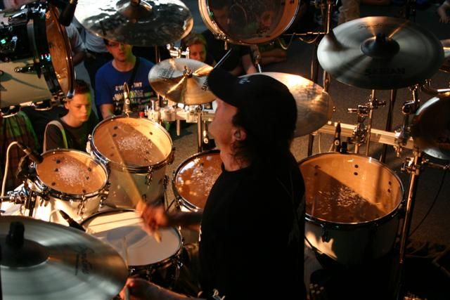De afspraak stond: 12 Juni ittervoort Clinic Adams Drumworld. Hij belde en vertelde dat hij een probleem had, we spreken nu van dinsdag 12 juni. het probleem werd duidelijk toen hij binnenkwam en het verhaal aan ons vertelde. En nu....? We stonden versteld van zijn professionaliteit, Virgil nam zijn stokken en repeteerde achter elkaar 5 uur lang om zijn patronen van zijn spel te wijzigen en zo zijn linker arm zoveel mogelijk te sparen. Waanzinnig om te zien hoe een drummer dit opvangt, we hadden dit nog nooit mogen ervaren. The show must go on en hoe...hij liet zien hoe je je moet opstellen als je in dienst speelt van....en dat het ook nog niet ten kosten gaat van zijn persoon als drummer. Hij vraagt veel van zich zelf en kan ongelofelijke concessies doen. 20.30 show time.......Als we niet hadden verteld dat hij een blessure had dan had niemand er iets van gemerkt. Wat een waanzinnge clinic.......met deze informatie vonden wij het in ieder geval de mooiste clinic ooit bij Adams Drumworld. Virgil bedankt namens ons en namens de aanwezige ...een avond om niet te vergeten!!