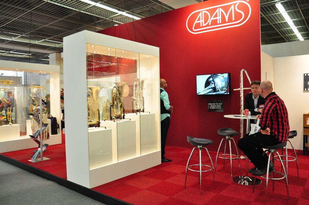 De instrumentenbouwer uit Ittervoort presenteert zich in Frankfurt op twee stands. “We hebben in hal 8.0 een stand waar we ons professioneel concertslagwerk uitstallen. Hier kunnen professionele slagwerkers en paukenisten met al hun vragen terecht en onze top series uitproberen. In hal 10.2 staat een grote stand met blaasinstrumenten en al het andere Adams slagwerk.