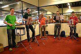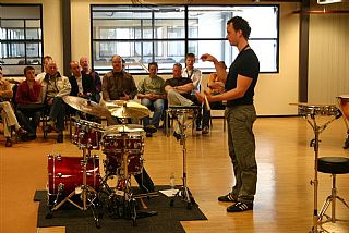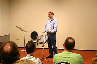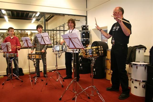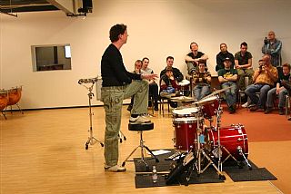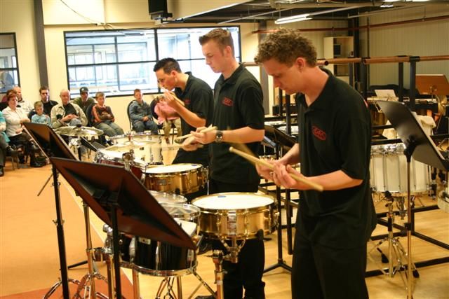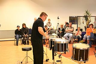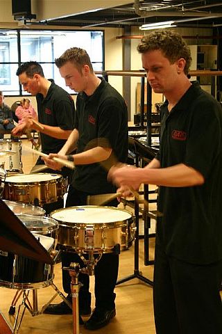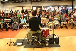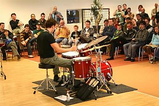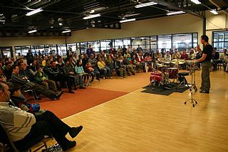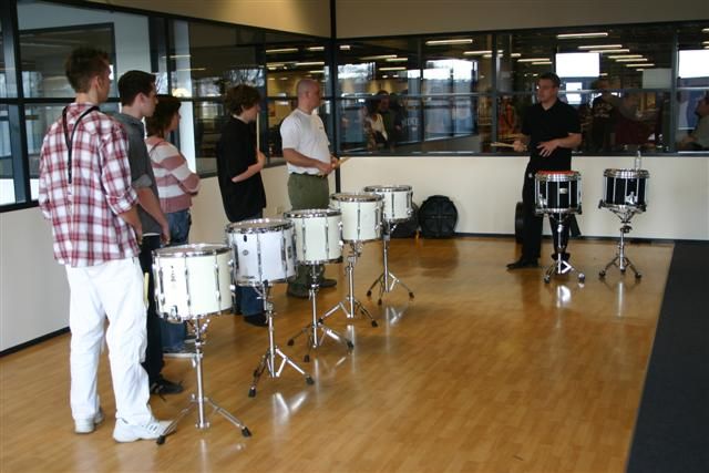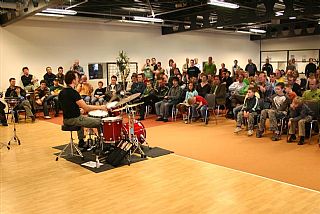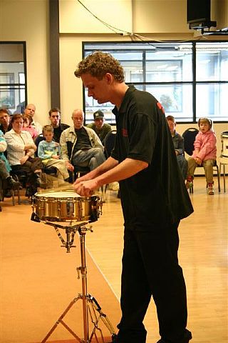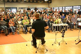 Een groot succes! Zo mag de eerste dag van de snaredrum gerust worden getypeerd. Met 150 aanmeldingen voor de clinics en de workshops zaten deze de hele dag door hartstikke vol. En bij de optredens waren de zalen tot het laatste plekje gevuld, want naast de deelnemers waren er ook zeer veel geïnteresseerden. Daarom zal de dag van..., wat Adams betreft zeer zeker een vervolg gaan krijgen...