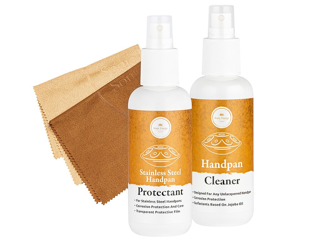 Het Meinl Sonic Energy Stainless Steel Handpan Care Set bestaat uit een professioneel reinigings- en beschermingsmiddel om handpans van roestvrij staal te ontdoen van vuil, vlekken en vettige resten, en ze vervolgens te sealen.