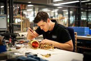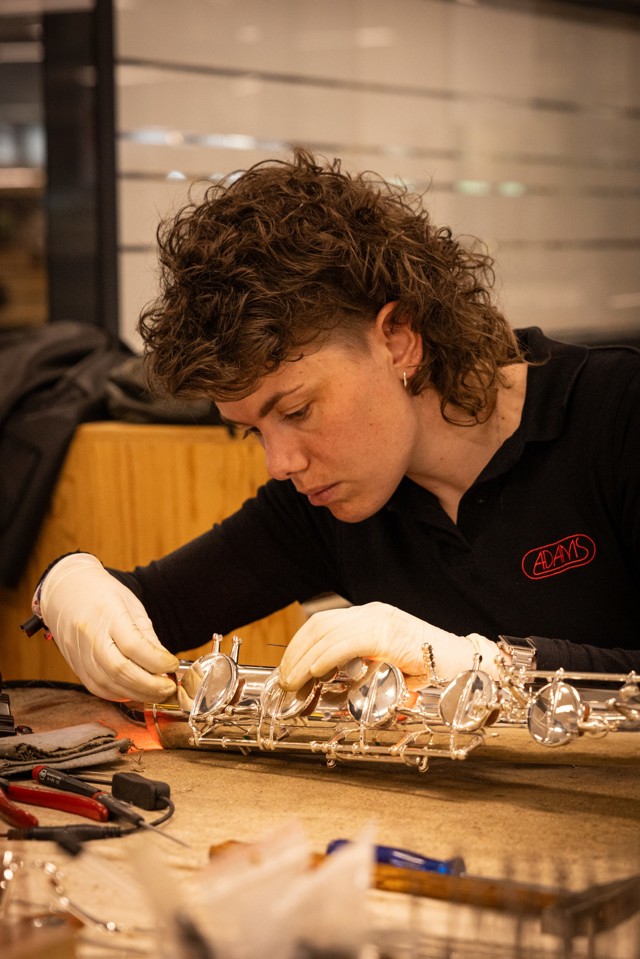 Een saxofoon zou idealiter een keer in het jaar door een professionele reparateur moeten worden nagekeken. De reparateur voert dan een soort kleine beurt uit op je instrument. Op deze manier blijft het instrument in topconditie en kan een reparateur preventief werken en ben je op de hoogte van eventuele reparaties die in de toekomst nodig zijn om onaangename verrassingen te voorkomen. Zo blijven dus ook de kosten het laagst. Bij Adams kan je altijd een afspraak maken met een van onze gecertificeerde houtinstrumentspecialisten. Onze reparateurs gaan regelmatig op werkbezoek bij de grootste saxofoonmerken om op de hoogte te blijven van de laatste technieken en materialen.
