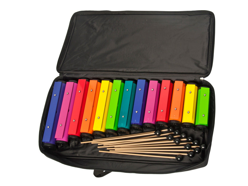 Deze Adams Kids Klankstaven bevat een set van 13 diatonische klankstaven; een lage A, B, C, D, E, F, G, en een hoge A, B, C, D, en F. De klankstaven zijn te bespelen met minimale muzikale ervaring. De staven hebben metalen toetsen met kunststof klankkasten. Bij deze set is inclusief een tas en dertien mallets.
