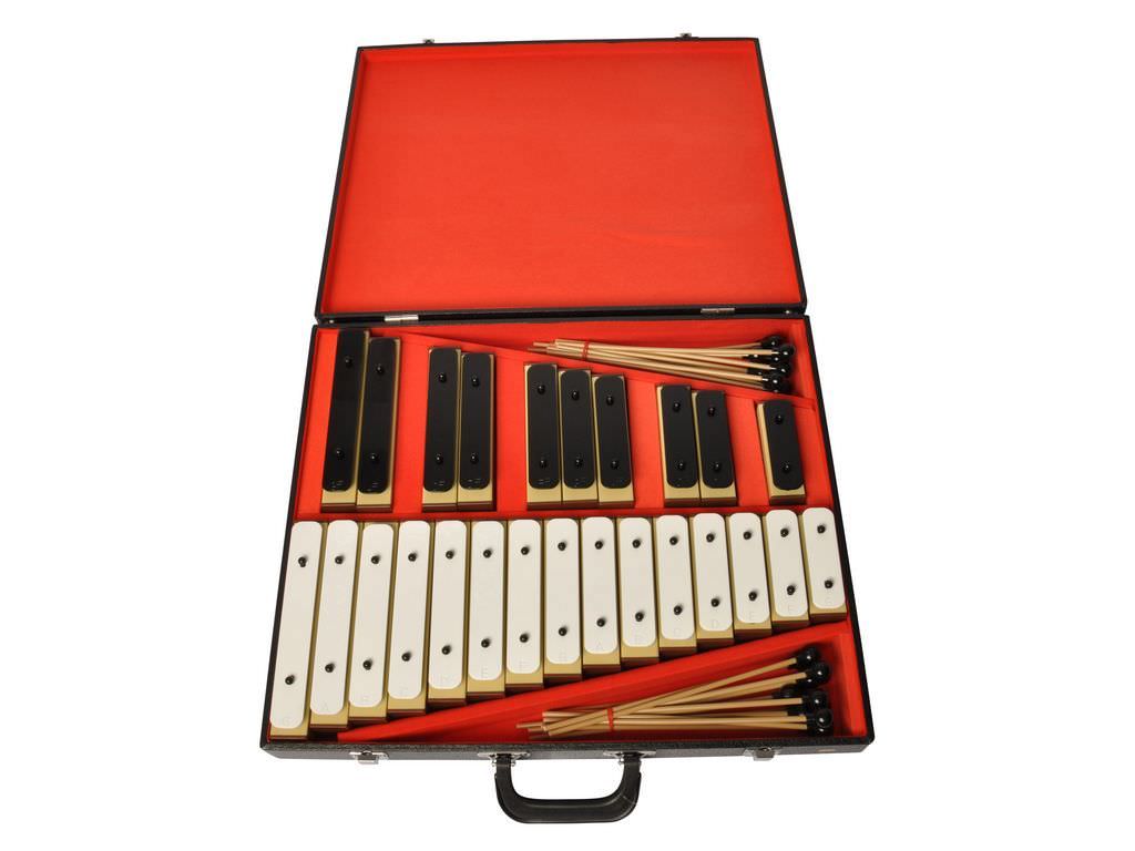 Deze Adams Kids Klankstaven bevat een set van 25 chromatisch klankstaven; van g1 tot g3. De klankstaven zijn te bespelen met minimale muzikale ervaring. De staven hebben aluminium toetsen met een houten klankkast, wat zorgt voor een goede resonantie. De kleuren van de toetsen zijn hetzelfde als die van een piano.