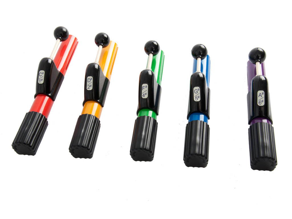Deze aanvullende set hand bellen vult een set diatonische bellen aan met de chromatische tonen. Deze set bevat 5 bellen met een c#, d#, f#, g# en a#. Samen met een diatonische set is het mogelijk om bijna alle melodieën te creëren.