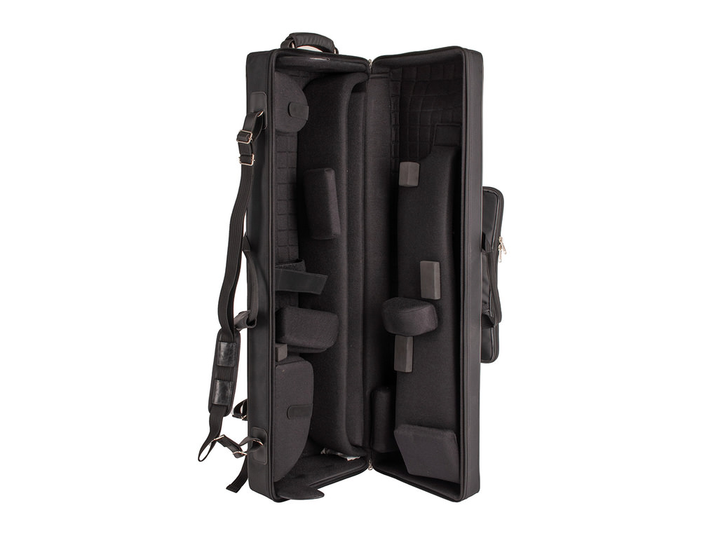 Deze koffers van Marcus Bonna zijn ontworpen voor twee Tenor trombones. Het koffer is gemaakt van een stevig glasvezel geraamte dat bekleed is met duurzaam nylon. De binnenkant is voorzien van 1cm dik foam en een zachte synthetische voering. Beide trombones passen perfect met de twee tussenwanden en 11 modulaire blokken.