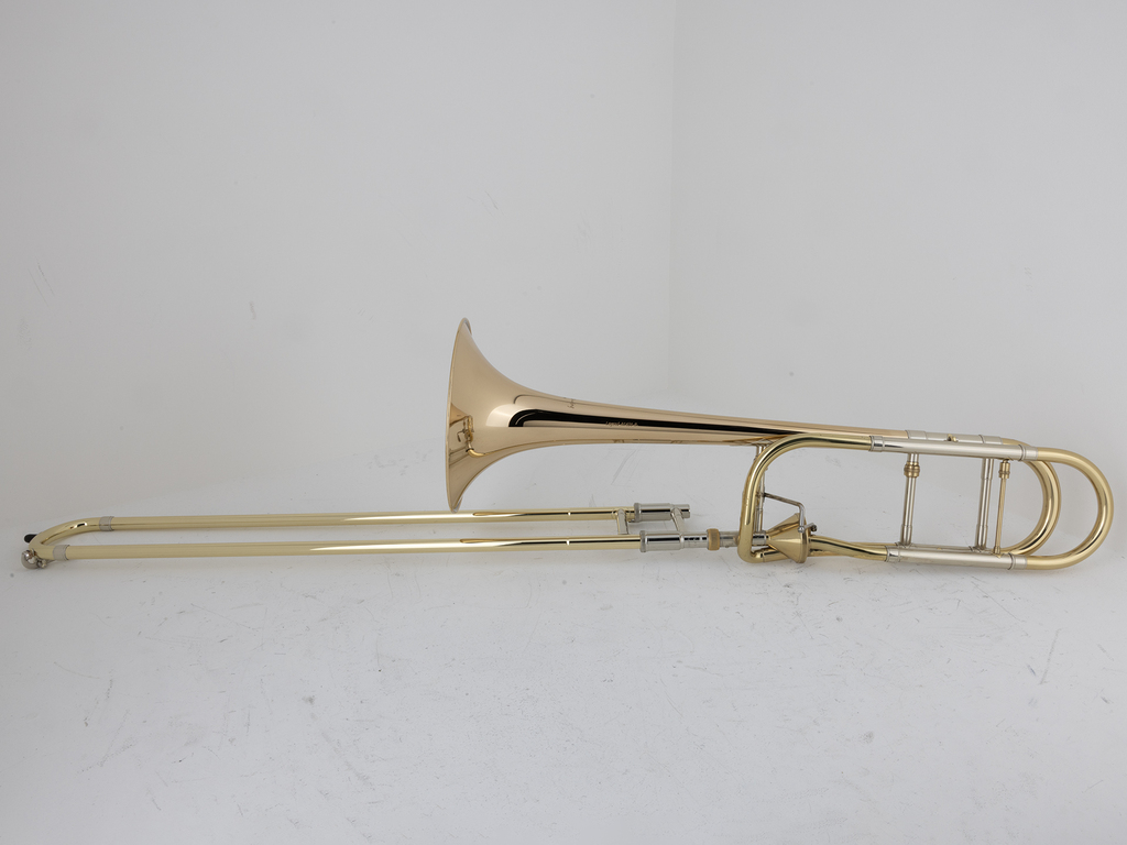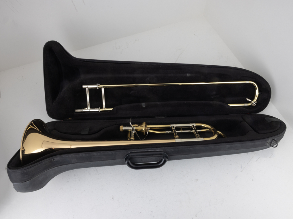 Gebruikte Tenor Trombone Courtois Legend AC420-R, goldbrass beker met Thayer valve, gelakt incl. etui
